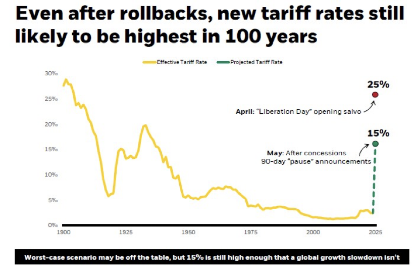 Source: Blackrock, Bloomberg, State of U.S. Tariffs, Yale University, as of 05/12/2025