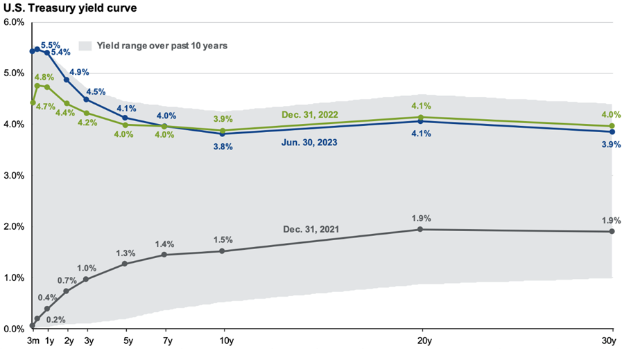 Source: FactSet, Federal Reserve, J.P. Morgan Asset Management, Guide to the Markets: U.S. Data are as of June 30, 2023