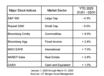 Tariffs have taken over all other financial discussions since the close of the quarter. We knew something was coming but we did not know the substance until April 2nd, branded “Liberation Day” by the administration. After the announcement of the tariffs there was a broad market sell-off. Markets expected lower tariffs and the higher tariff figures spooked everyone. Since the announcement there has been a tit for tat response by China, backtracking on a variety of industries and imports, and pausing of tariffs on most countries for 90 days. A tariff is a tax, a tax highly likely to be passed through to the consumer. Domestic alternatives will be winners, and to the extent there are no alternatives there will be losers.[i]