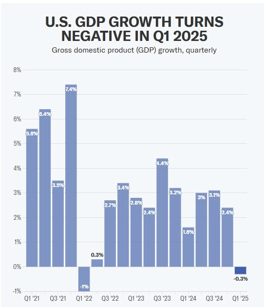 EXECUTIVE SUMMARY- GDP turns negative for the first time in three years driven largely by higher imports in Q1 2025 in anticipation of President Trump’s tariff policy.