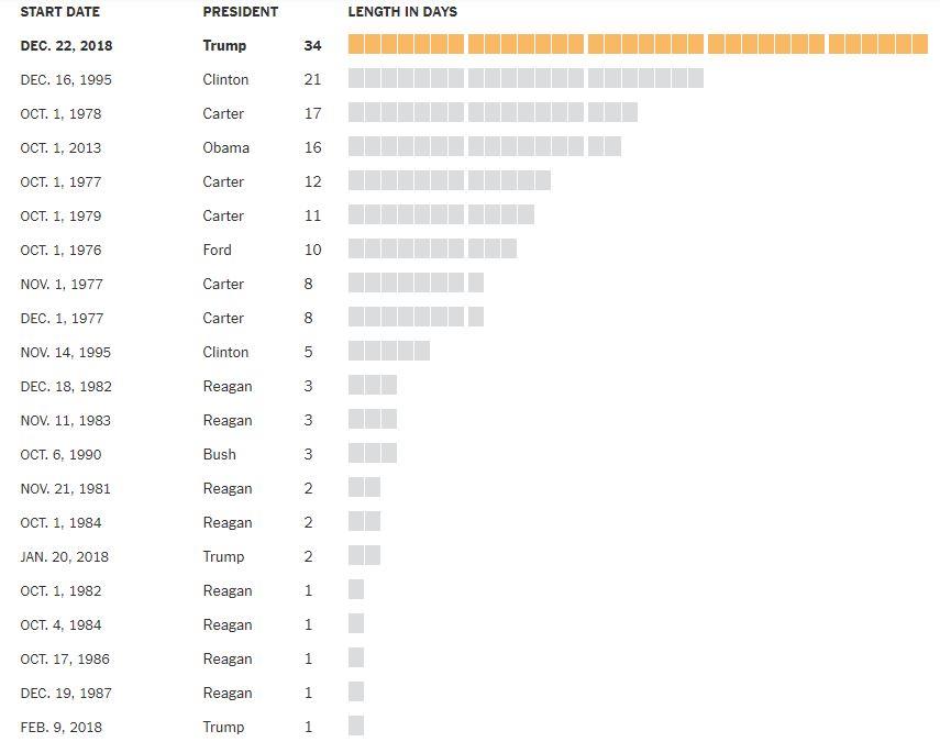 7 Zaveri, Mihir, et al. “This Government Shutdown Is the Longest Ever. Here’s the History.” The New York Times, NY Times, 24 Jan. 2019, This Government Shutdown Is the Longest Ever. Here’s the History.