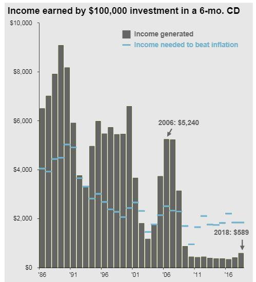 A review of the last 20 years of CD interest returns on a $100,000 investment provides an illustration of the meager returns available on cash right now.