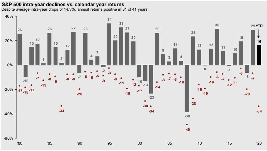 - Despite all the turmoil markets ended 2020 substantially above the intra-year lows.