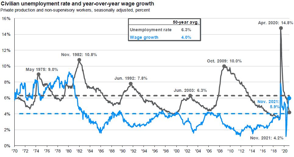 With the Federal Reserve accelerating tapering, anticipated interest rate increases, and additional massive Federal spending bills off the table, the fuel for the inflation fire is slowly being cut. On the optimistic side, this will allow the forces we experienced during the 2010’s, demographics and technological advancement, to reassert themselves and return to more muted price and wage growth.