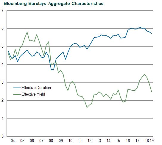 Our expectation of increased interest rates has forced us to look very hard at how our fixed income investments are allocated. For retiree’s and pre-retiree’s fixed income is a substantial portion of many investment portfolios. With persistent low interest rates over the last decade, the reach for yield has increased the average duration inside of traditional bond portfolios. Without diving into the deep end, longer duration is bad in a rising interest rate environment. A 1% increase in rates will result in a 10% reduction in the value of a bond with a duration of 10. One of the flagship bond indexes of the last 30 years is the Bloomberg Barclays Aggregate Bond Index, or AGG for short. For many years a derivative of this index was the backbone of our fixed income portfolio providing stability in yield and credit quality.