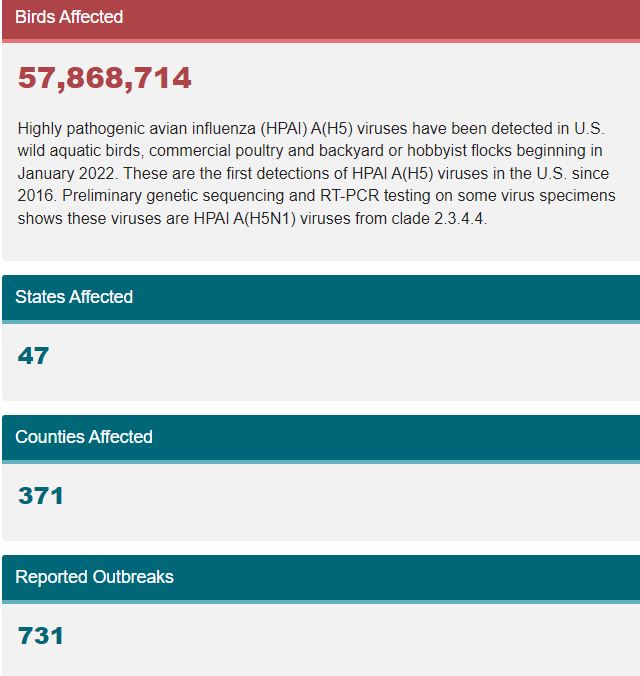 4 “H5N1 Bird Flu Detections across the United States (Backyard and Commercial).” Centers for Disease Control and Prevention, Centers for Disease Control and Prevention, 18 Jan. 2023, https://www.cdc.gov/flu/avianflu/data-map-commercial.html.