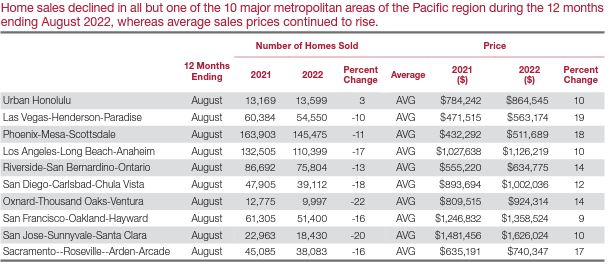 As you can see above, sales were down year over year from 2021 to 2022 in the major metro areas in the Pacific region. However, prices were up over the same timeframe. There is room for a correction. The best time to buy a house is when it makes sense for you. Something we hear often is that people feel like they have missed the boat. Don’t let that feeling override clear-headed decision making. We live in a very expensive region where it feels like it is impossible to buy. Really, it just requires good planning and time. The best advice we have for our clients looking to buy a home is to be patient and prepare. Sales volume is coming down, sellers are beginning to offer concessions, and time is on your side.