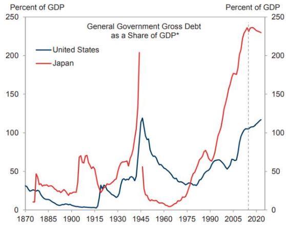 - Predicting the future is a fickle thing, but a common concern is that the U.S. will go the way of Japan with the amount of debt we are taking on as a percentage of GDP.