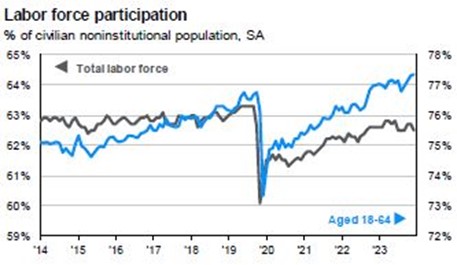 A strong recovery in labor force participation between those aged 18 – 64 has boosted the U.S. economy, with many of those entering the country being in this cohort. Former President Trump was recently on a podcast speaking with prominent tech and venture capital leaders. He made the statement that if he is re-elected his administration would create a pathway to citizenship for non-resident students in the U.S. for education purposes. To people in Silicon Valley this was music to their ears as they try to attract foreign-born talent to fill open tech positions. Whoever our next President is, figuring out how to attract and retain the best from around the world will be a key to continued success.[vi]
