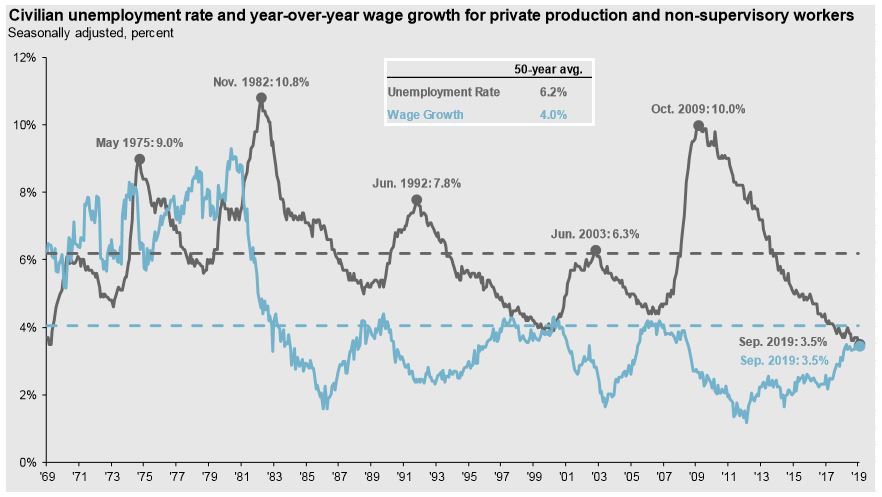 The employment market in the United States is very strong right now. Our general sense from reading policy statements by the Federal Reserve leads us to believe that a part of the loosening of monetary policy is to keep this trend moving forward. Fed Chair Jerome Powell spoke directly to this issue saying, “Participation in the labor force by people in their prime working years has been increasing. And wages have been rising, particularly for lower-paying jobs. People who live and work in low and middle-income communities tell us that many who have struggled to find work are now getting opportunities to add new and better chapters to their lives. This underscores, for us, the importance of sustaining the expansion so that the strong job market reaches more of those left behind.” vii