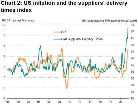 - Supply chain delivery times are a good indicator of the path of inflation; businesses are taking notice and expressing lengthened expectations on normalization of their supply chain.