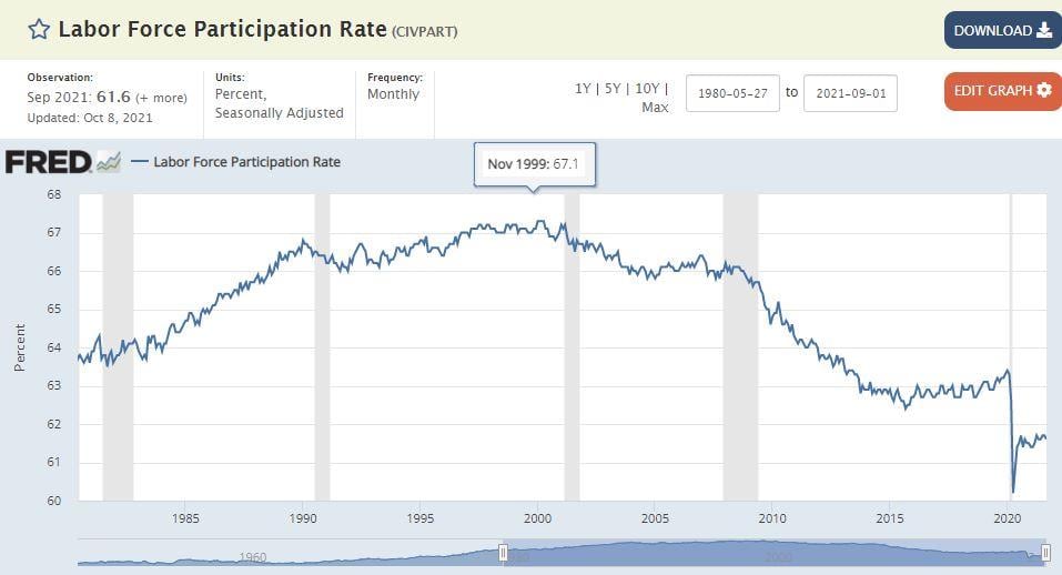 In a small town in the middle of nowhere we recently had a discussion with our server about the state of hiring. It is a small data point, but one which serves anecdotally to back-up what we hear on the news. The dishwasher position was open and starting pay was $20/hour, but no one was applying. For those of us who began our working life in the restaurant industry, this was eye-watering. In fact, it is so hard for this restaurant to fill positions they are forced to close for business one day a week so staff can have a day off. Good pay and a day off are great for workers, but having to close for a day is bad for a restaurant, unless you are Chick-fil-A.