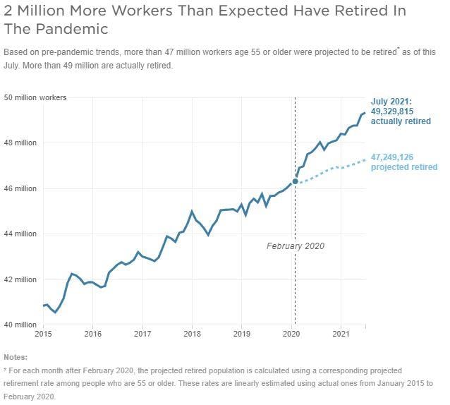 5 Hsu, Andrea. “These Older Workers Hadn't Planned to Retire so Soon. The Pandemic Sped Things Up.” NPR, NPR, 23 Aug. 2021, https://www.npr.org/2021/08/23/1028993124/these-older-workers-hadnt-planned-to-retire-so-soon-the-pandemic-sped-things-up.