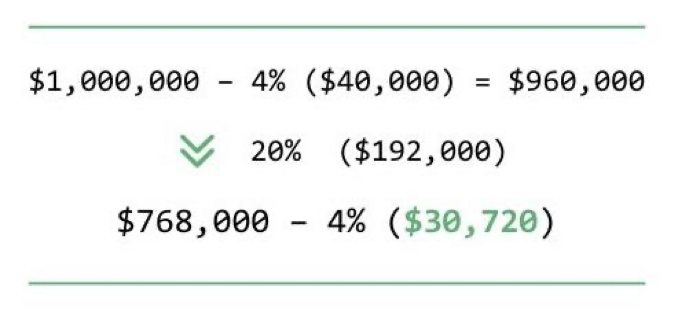 If you have a $1 million portfolio and you withdraw 4%, you have a nice $40,000 income. But what happens the next year if the portfolio loses 20% of its value?